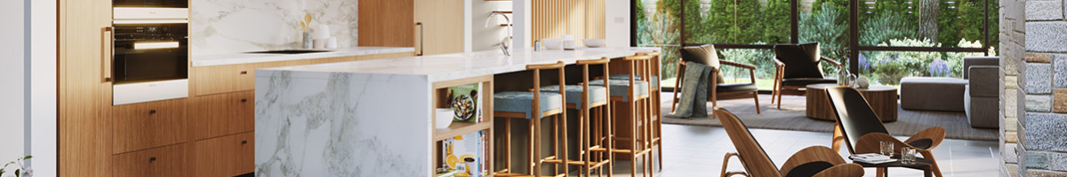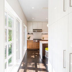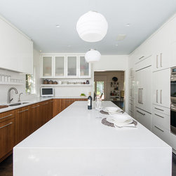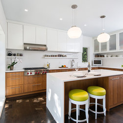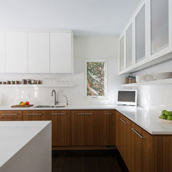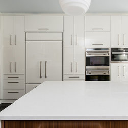 Modern Kitchen with Rift Walnut and High-Gloss White Cabinetry