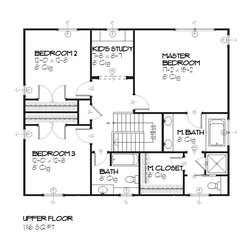 The large foyer open to the staircase is welcoming for guests. The home office complete with built-in and window seat is set apart from the rest of the home. Kitchen, Dining, and living rooms are centered on the fireplace near the rear of the home. Spacious mudroom with lockers and bench are great for storage, with laundry and bath filling the back entry. On the second story the kids study is located between the two additional bedrooms. A master suite with large closet and separated master bath provides privacy and comfort.