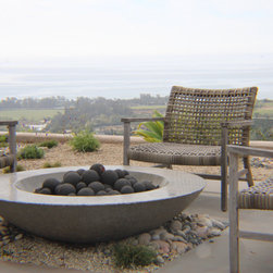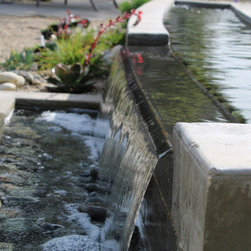 A 8' wide concrete fountain is custom designed and built. It has a bronze lip where water beautifully "sheets" out. The fountain is overlooking the ocean and greater valley below.
