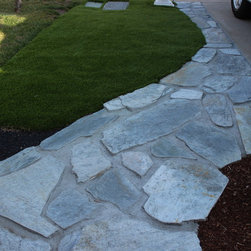 Flagstone path, artificial grass
