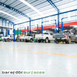 Finished garage flooring project done by Barefoot Surfaces.