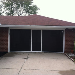 Lifestyle Garage Screen! Allows the breeze in while keeping the pests and critters out. This garage is ready for year-round use! www.daytondoors.com