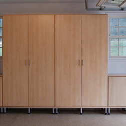 The homeowner needed more flexibility overall for storing odd shaped items, such as the bike and ladder. The sheet rock on the wall was not strong enough, so we added slatwall, which is the ultimate storage solution. Our heavy duty steel hooks, shelves and baskets can easily snap into place. Call...
