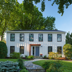 The owners of this two-story colonial in suburban Maryland wanted the exterior of their house to reflect their modern sensibilities. But they didn’t want to break the bank—or risk upsetting the traditional neighborhood’s apple cart. Also on their wish list: low-maintenance materials.