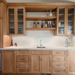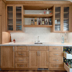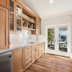 Thoughtful planning has resulted in a kitchen bursting with storage solutions. During the design process, a pantry and bar were added. The bar area in this San Jose Kitchen Remodel is now equipped with a beverage cooler, prep sink, coffee station, bottle storage, and open shelving, making cooking, dining, and entertaining effortless and enjoyable in this stylish, amenity-rich kitchen.