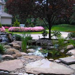 Aquatic Artists crafted this natural stone pond and waterfall in Cherry Hill, NJ.