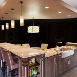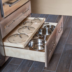 Unique Features: drawer in drawer for pot lids, pull out drawer in toe kick for dog dishes, toe space step stool, swing up mixer shelf, pull out spice storage.