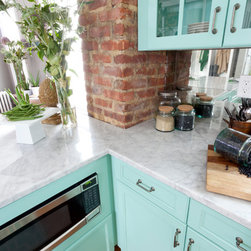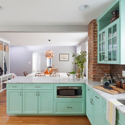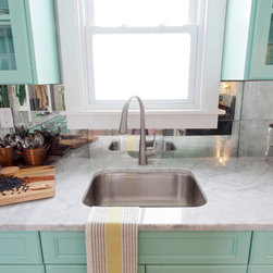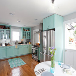 The new kitchen is not only more open and airy, but a window was knocked out to put in a dutch door that leads to the new deck.