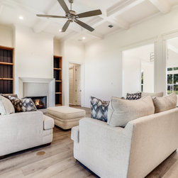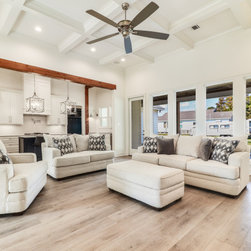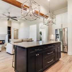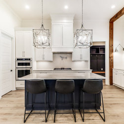This gorgeous modern farmhouse has an open floor plan, 4 bedroom and 2.5 baths. The common areas offer 12’ ceilings, custom coffered ceilings define the space within the living room and large windows throughout let the natural light pour in. The dining room and 4th bedroom stand out with double windows, chandeliers, and custom accent walls. The spacious kitchen with plenty of storage is perfect for all the family gatherings. Natural timber with a lap siding accent wall and three operable windows adorn the kitchen sink wall with a view to the outdoor kitchen area. The master bedroom offers a cathedral ceiling and barn door into the master bathroom. The master en suite includes his and her custom vanities with linens, a large opaque window above the free-standing tub, custom tiled shower, water closet and a large walk-in closet with custom built-ins that lead into the utility room. The back porch is large and a great space to relax or entertain, as it has a wood burning fireplace, gas grill, and side burner. This home also features a custom built in at the fireplace, a 3-car garage, 5 panel doors throughout, and a custom mud bench.
