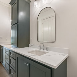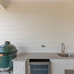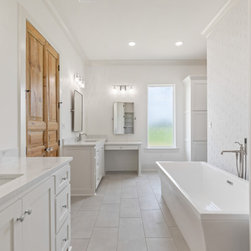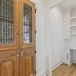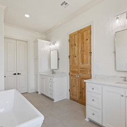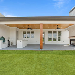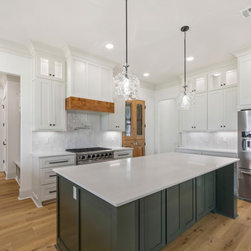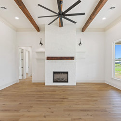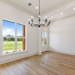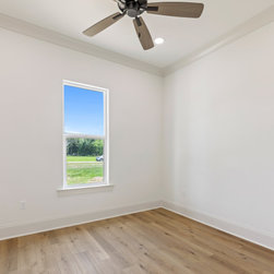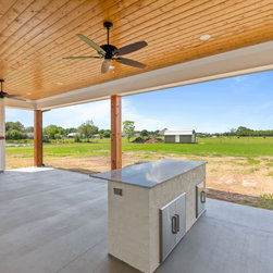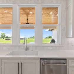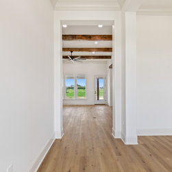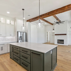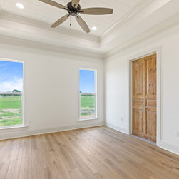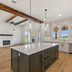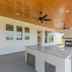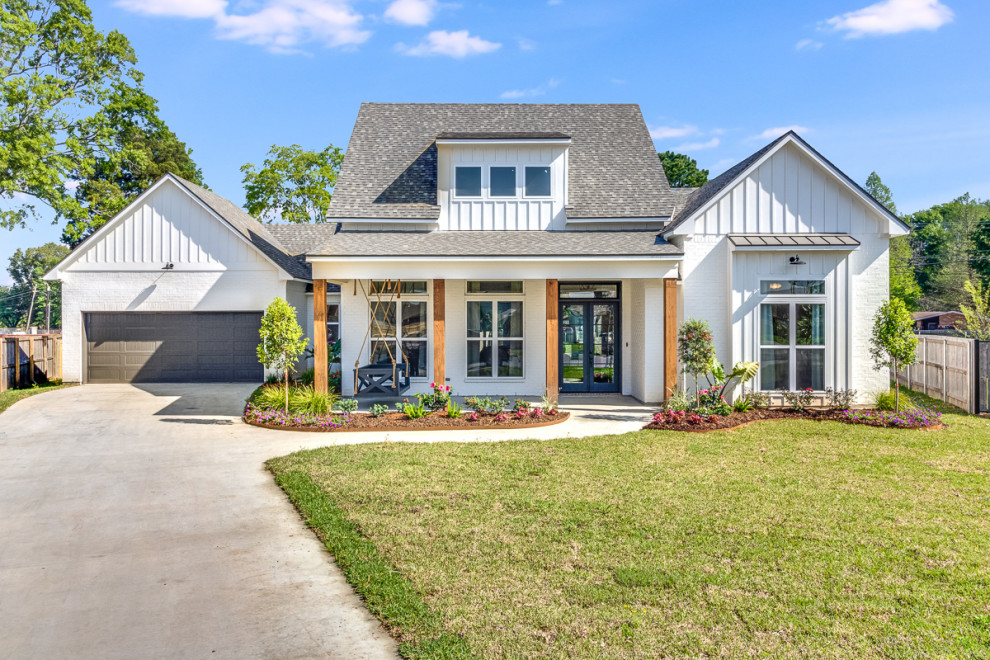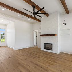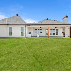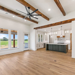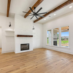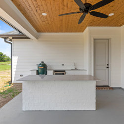 The foyer opens to the cozy living room which boasts rustic antique timber beams and a striking brick fireplace. Moving further in, the kitchen is outfitted with KitchenAid stainless steel appliances, a pot filler, a grand island, plenty of cupboard space, a butler's pantry, and a walk-in with exquisite antique double doors. The master bedroom also features a tray ceiling with lap siding inset, and its walk-in closet is equipped with custom built-ins and an island with drawers. Entry to the master bathroom is provided by double antique doors and it boasts separate vanities, linen closet, a freestanding tub, a custom tile shower, and a toilet closet. Furthermore, three additional bedrooms are shared by a hallway bathroom that is supplied with a double vanity and the ideal amount of storage space. A powder bath is also available with access both indoors and outdoors. Outside, a large back porch with a spectacular view of the owner’s pond and open green fields can be enjoyed. Families can cozy up around the wood-burning fireplace or watch the chef cook something up on the Green Egg in the outdoor kitchen.