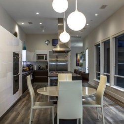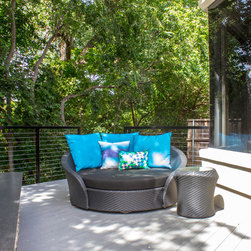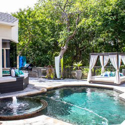 Cantoni Dallas design consultant Elizabeth Lewis made over this home with cool blue tones and metallic accents for an overall refreshingly modern feel.