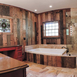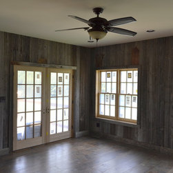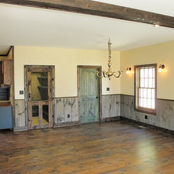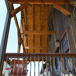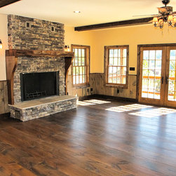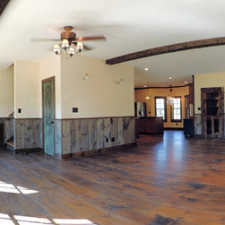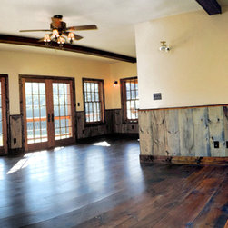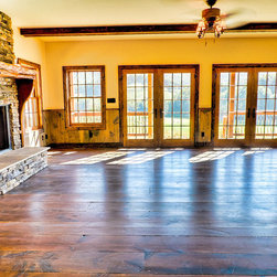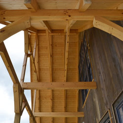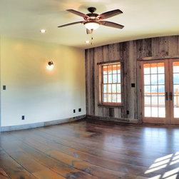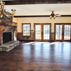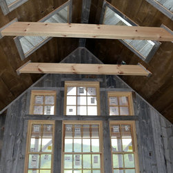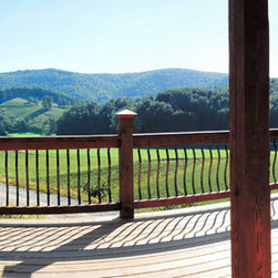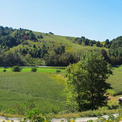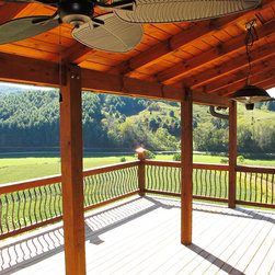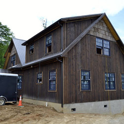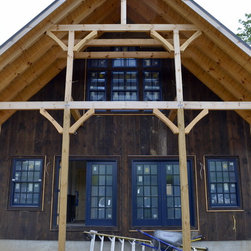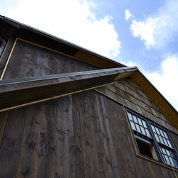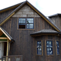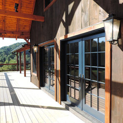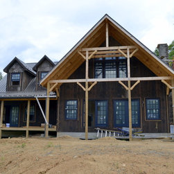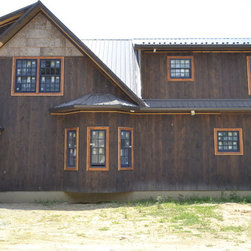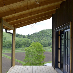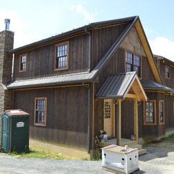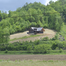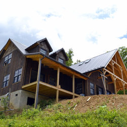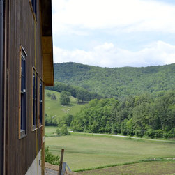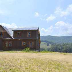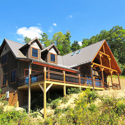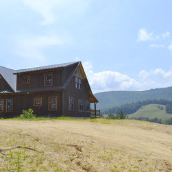 Located in Sugar Grove, North Carolina, this house features a contrast between a traditional rustic barn and a craftsman style mountain cabin. It overlooks the mountains and large garden tracts below.