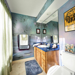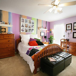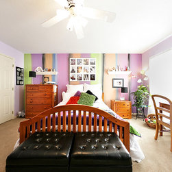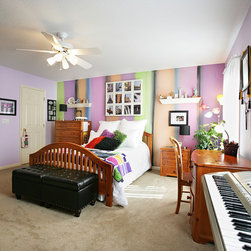 Beautiful multi-colored walls make this teen's bedroom super funky and unique.