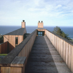 The longitudinal axis is set parallel to a cul de sac street and perpendicular to both the sloping grade and coastline. This approach allows the house to both merge with, and elevate above, its setting, while the various space requirements expand out along the sides of the axis according to their program, height, and orientation preferences. Rooms are cooled naturally with manually operated hatches and passive ventilation chimneys.