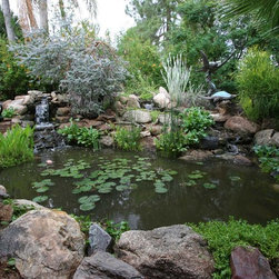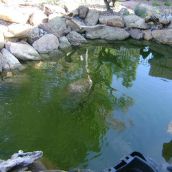 A lifeless concrete pond covered with liner and rock is transformed into a gorgeous living ecosystem pond. Previously a source of constant frustration, it's now a place of peace and enjoyment.