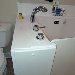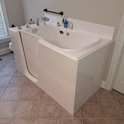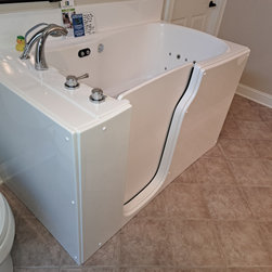 We installed a custom designed walk in tub in the empty space in the bathroom.