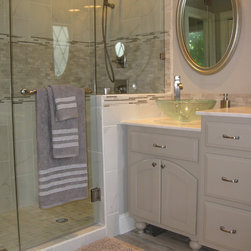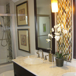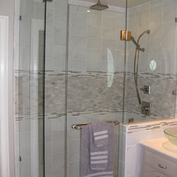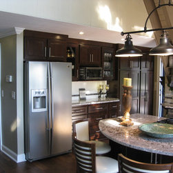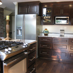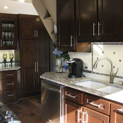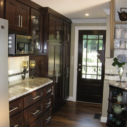 This room was originally a galley kitchen and dinning room, after fully gutting these two rooms a new modern contemporary kitchen was install. This new kitchen has custom cabinets with a dark glazed finish, Bianco Antico granite counter tops, subway tile backsplash with accents, new smoked walnut...