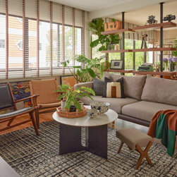 A 300 x 200 hand-knotted rug made from New Zealand wool and bamboo silk, fitted in a cosy living room setting in a HDB apartment in Keng Lee Road.