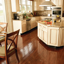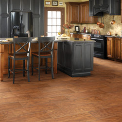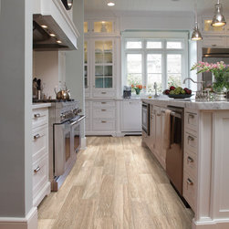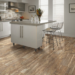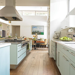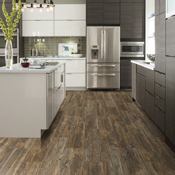 Contemporary Kitchen with Rustic Floors