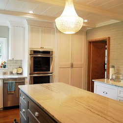 Complete remodeled kitchen in 1950's home. Kitchen size doubled when Breakfast room is removed and brick wall is opened into Dining Room.
