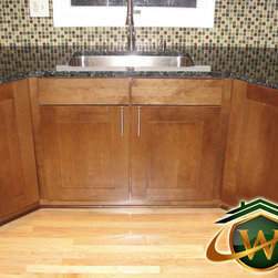 Maple Wood Cabinets and Tile Backsplash