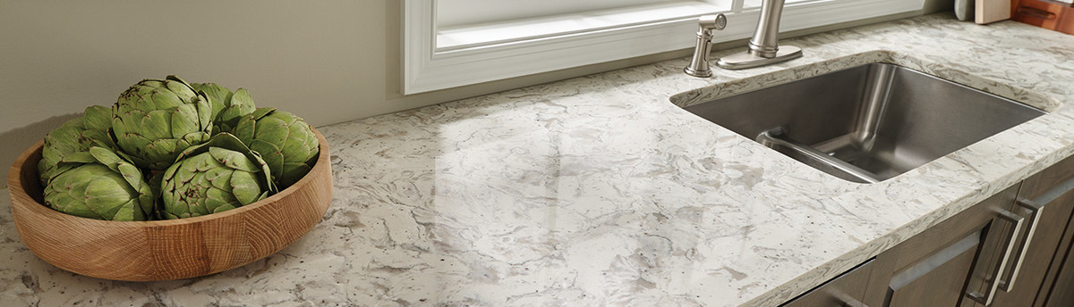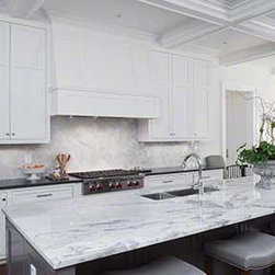 Sygma Café, White Quarry Splitface, Arabescato Carrara Herringbone Pattern Honed in a Mesh, Carrara White Marble