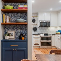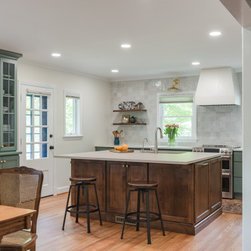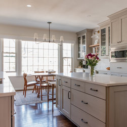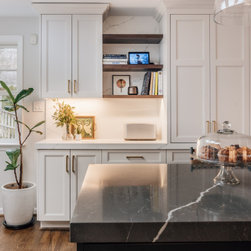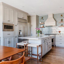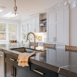 The clients wanted to turn their disconnected and dark kitchen into a bright, classic space with lots of smart storage and multiple seating areas for the family to gather.