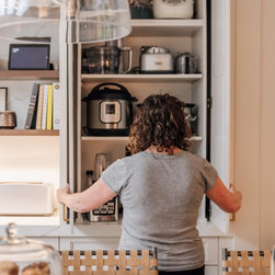 One of our most asked for kitchen features is a place to tuck away small kitchen gadgets. This appliance garage makes for easy access while keeping the counters neat and tidy.