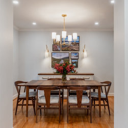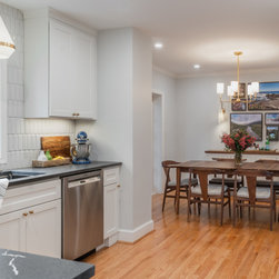 The house originally had a traditional formal dining room and separate kitchen. The layout separated the kitchen and dining room making two small, dark, outdated spaces.