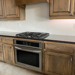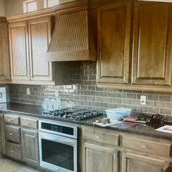Kitchen update the customer decided to change out the backsplash to update and lighten up the kitchen. Transformed the area. Outlets were buried in the wall as well for a cleaner look and the customer didn't need them. Turned out great and the customer is very pleased with the look she was going...