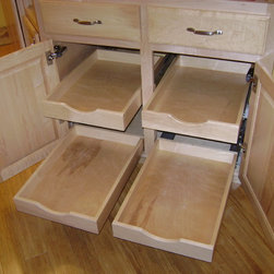 Families are busier than ever, so they look for special features in their kitchen cabinets that not only look good, but improve the functionality. Deep drawers provide additional space for storage of items that don’t fit their shallow counterparts. You can store more items and get them off the countertops. Lazy Susan’s are increasingly popular. Lazy Susan’s can be single layered or tiered depending on your needs. Rollout waste cans can be installed in base cabinets to keep them out of sight when the cabinet is closed.