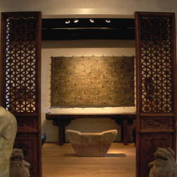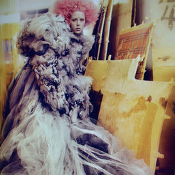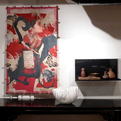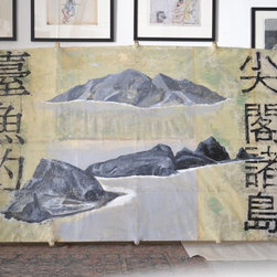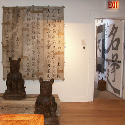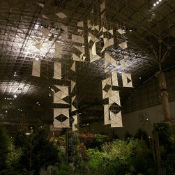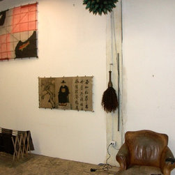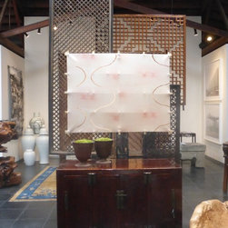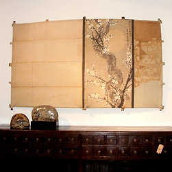 Decorative kites made with split bamboo frames, muslin and collaged decorative papers, painting, staining. Sizes vary and can be made as large as necessary.