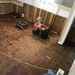 Dishwasher has been leaking for awhile and the subfloors are wet throughout the home including the Kitchen, living room, hallway, bedrooms, and crawlspace. We took moisture readings to determine how much flooring needed to be removed. We removed flooring down to the subfloor and hauled away all debris. We were then able to set up drying equipment throughout the home including dehumidifiers and air dryers to complete the drying out process. We took moisture readings again to ensure all the moisture is gone, preventing mold from growing in the future. We billed the homeowners insurance, saving them thousands in out of pocket expenses.