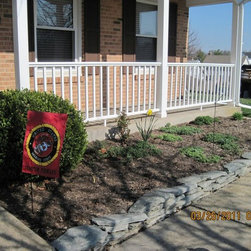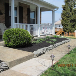Mulched front greenery bed