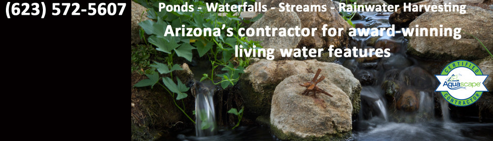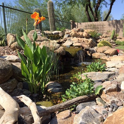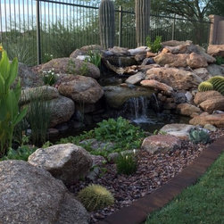 A lovely living ecosystem re-circulating pondless waterfall & stream in Anthem, AZ, by The Pond Gnome.