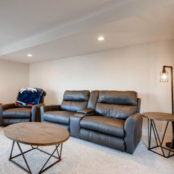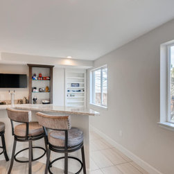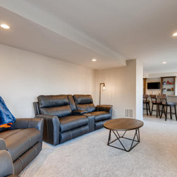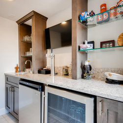 The ultimate man cave with a kegerator, wall urinal and TVs to watch multiple sports games at a time.