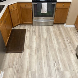 Remodel of Kitchen Floor with Arches Natural Luxury Vinyl Plank.