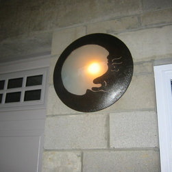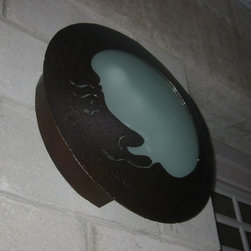Heavy steel sculpture, place assorted candles inside for a great outdoor look.