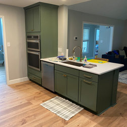The Lopez's got a full kitchen refresh with updates including new floors, recessed lighting, new cabinets and appliances. PB&J Remodeling gave them a clean and modern look for the kitchen, and also matched the mudroom with some custom built raised drawers for the laundry set. A beautiful new upgrade ready for family and entertaining!