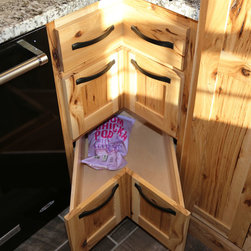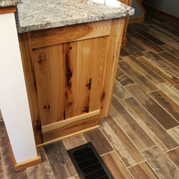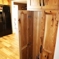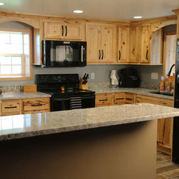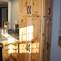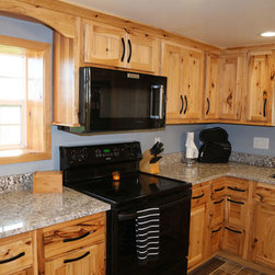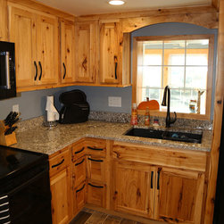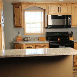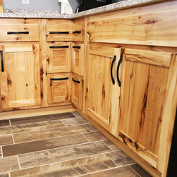 Iowa farmhouse with a rustic feel. This beautiful kitchen is with rustic hickory cabinets with a natural finish.