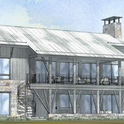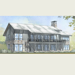 This cabin home is designed to offer privacay from the bustling street and be open to the rear in order to enjoy the water view. A gallery foyer is the perfect place for an art collection. Vaulted ceilings and abundant glass make the home feel spacious and bright. A large two story covered porch extends the home to the yard with a spiral staircase and allows ample seating for outdoor entertaining. The lower level walk out showcases a large family room, bar area, exercise room, and additional guest rooms.