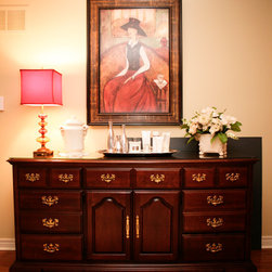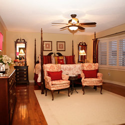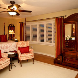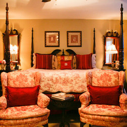 This luxurious red and cream room is warm and inviting. Perfect for a master suite!