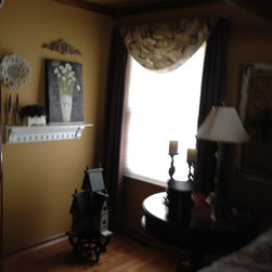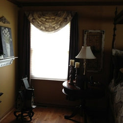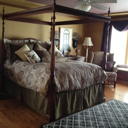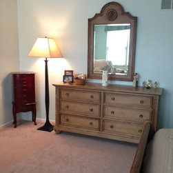 Arts and Crafts Floor Lamp, Annabel Arched Mirror, Edward Double Dresser all in Mushroom finish, all Ethan Allen.