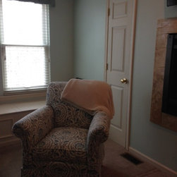 Ethan Allen Emma Chair in Micah Blue, Ivory Moss Stitch Throw.