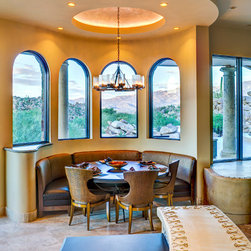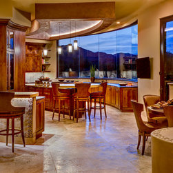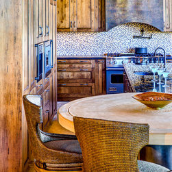 Arranging relaxing, open sitting areas that comfortably seat a couple or a crowd ultimately defines this kitchen. Whether you pull up a stool at the stamped concrete breakfast bar, or snuggle in the cozy banquette, life is good.