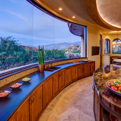 Surrounded by wide open spaces and panoramic views, the idea for this kitchen was to continue that stunning desert beauty inside. The unique interior architecture of this home had a lot of contemporary features. However, the clients envisioned a rustic kitchen, one that offered a greater sense of warmth and comfort. Bringing natural, earthy elements inside is designed to lull you.