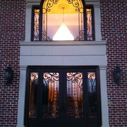 McKnight style doors allow plenty of vision of the outside with the beauty of the custom scroll work.