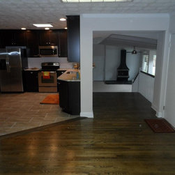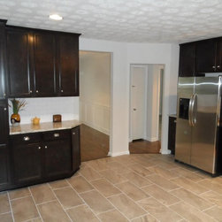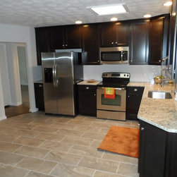 After shot of the kitchen. Complete kitchen makeover. Brand new appliances and granite countertops. Aristokraft Sinclair Sasprilla cabinets with Santa Ceila Light countertops.