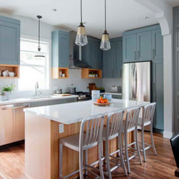 This is a kitchen from our Merit cabinet line. Colors are Snow and Twilight.