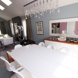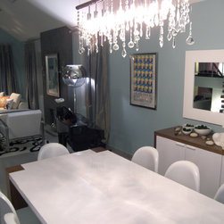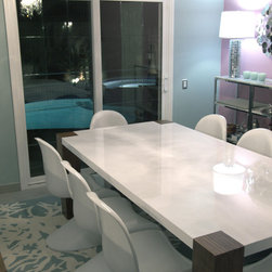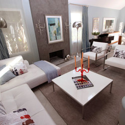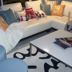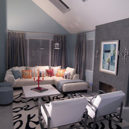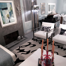 Modern furniture and its careful placement, combined with the creative use of color, pattern and texture, result in a dynamic space with Miami feel.
